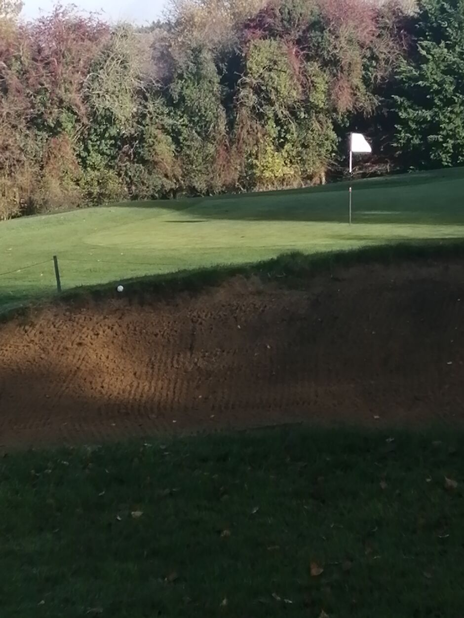 Just a bit of drizzle for the last team in, on the 18th. We played an AJ stableford competition taking the best 2 scores. 2 x 3 balls and 2 x 4 balls.